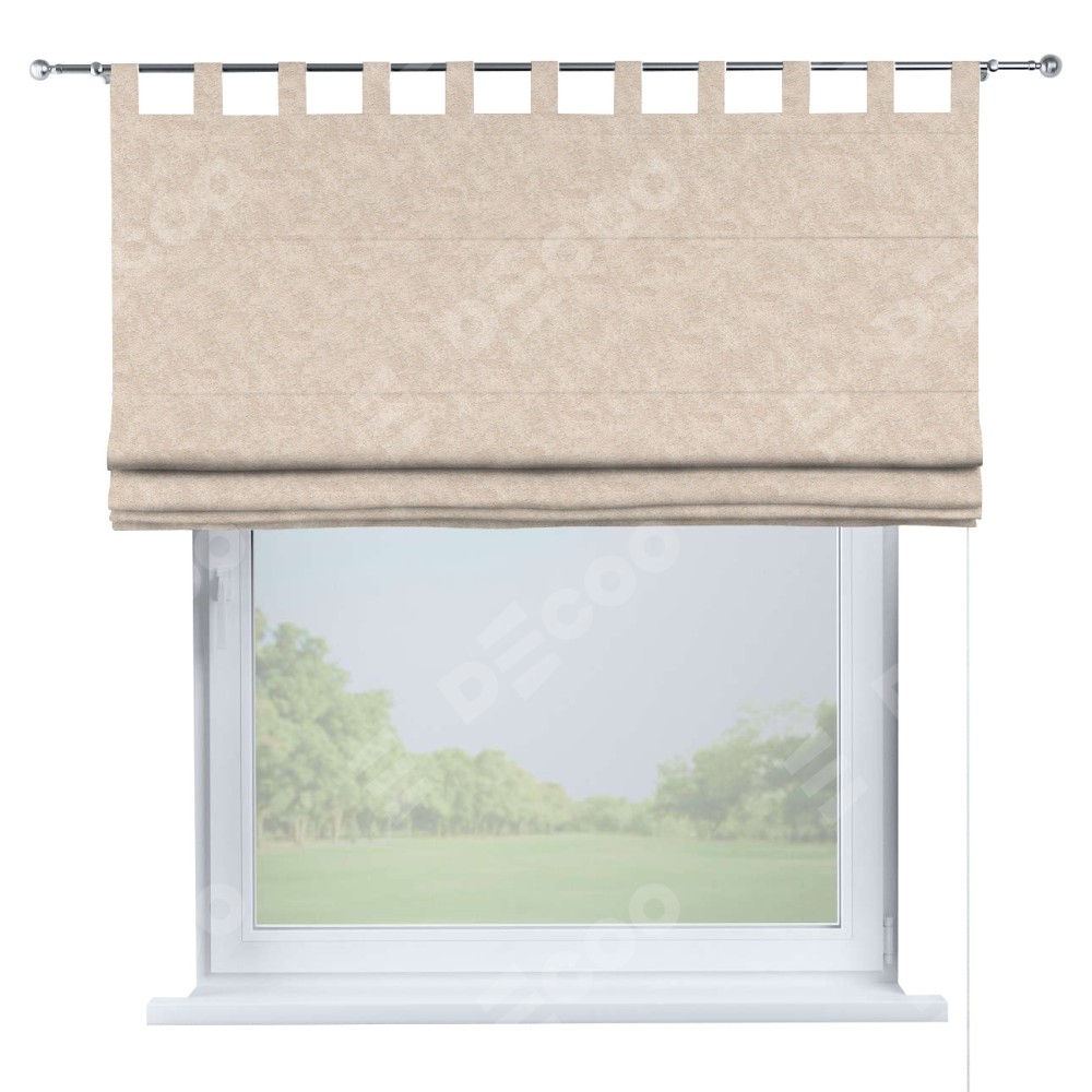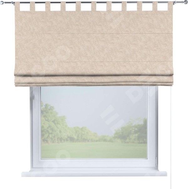 Римская штора производителя «Cortin», используется для проёма, пошита из ткани софт мрамор шампань, артикул ткани 93575. Данная модель пошита на петлях, комплектуется на выбор круглым карнизом и подходит для монтажа на стену. Римская штора на петлях имеет простую систему регулировки высоты, отличительным преимуществом данной модели является простой способ монтажа. Достаточно повесить ее на трубу и штора готова!