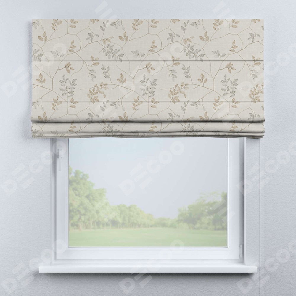 Классическая римская штора производителя «Cortin», пошита из ткани блэкаут с нанесением сублимационной печати «Флора бежевый». Имеет универсальный механизм и подходит для монтажа: на потолок, на стену и в нишу.