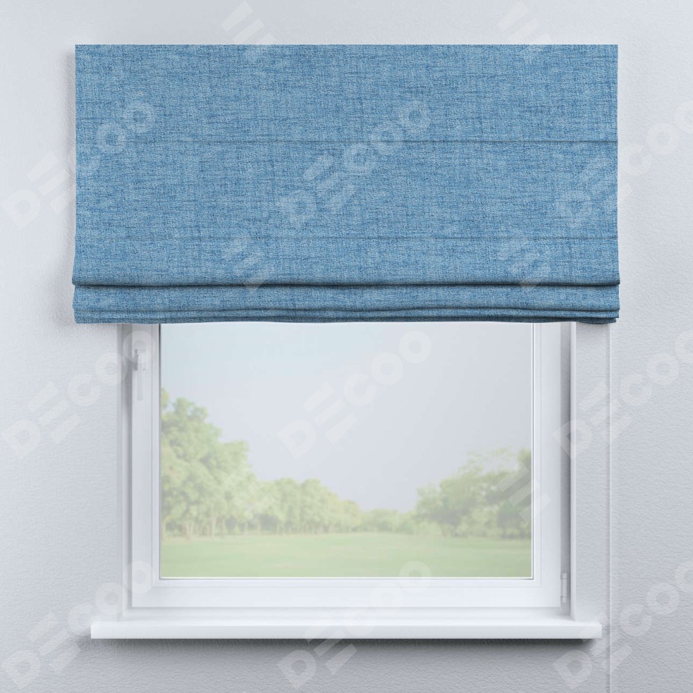 Классическая римская штора производителя «Cortin», пошита из ткани рогожка димаут голубой, артикул: 91025. Имеет универсальный механизм и подходит для монтажа: на потолок, на стену и в нишу.