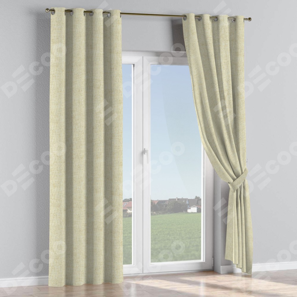 Комплект прямых штор, от производителя «Cortin», пошиты из ткани рогожка димаут золотой песок, артикул ткани 91015. Данная модель пошита на люверсах, комплектуется на выбор круглым карнизом и подходит для монтажа на стену или потолок. Прямые шторы на люверсах шьются по стандарту с коэффициентом 1/2 (на 100 см. ширины проёма 200 см. ширины ткани), отличительным преимуществом данной модели является простой способ монтажа. Достаточно повесить ее на трубу и штора готова!