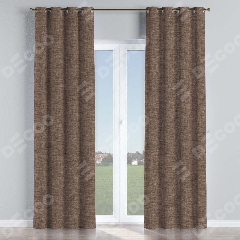 Комплект прямых штор, от производителя «Cortin», пошиты из ткани рогожка димаут коричневый, артикул ткани 91018. Данная модель пошита на люверсах, комплектуется на выбор круглым карнизом и подходит для монтажа на стену или потолок. Прямые шторы на люверсах шьются по стандарту с коэффициентом 1/2 (на 100 см. ширины проёма 200 см. ширины ткани), отличительным преимуществом данной модели является простой способ монтажа. Достаточно повесить ее на трубу и штора готова!