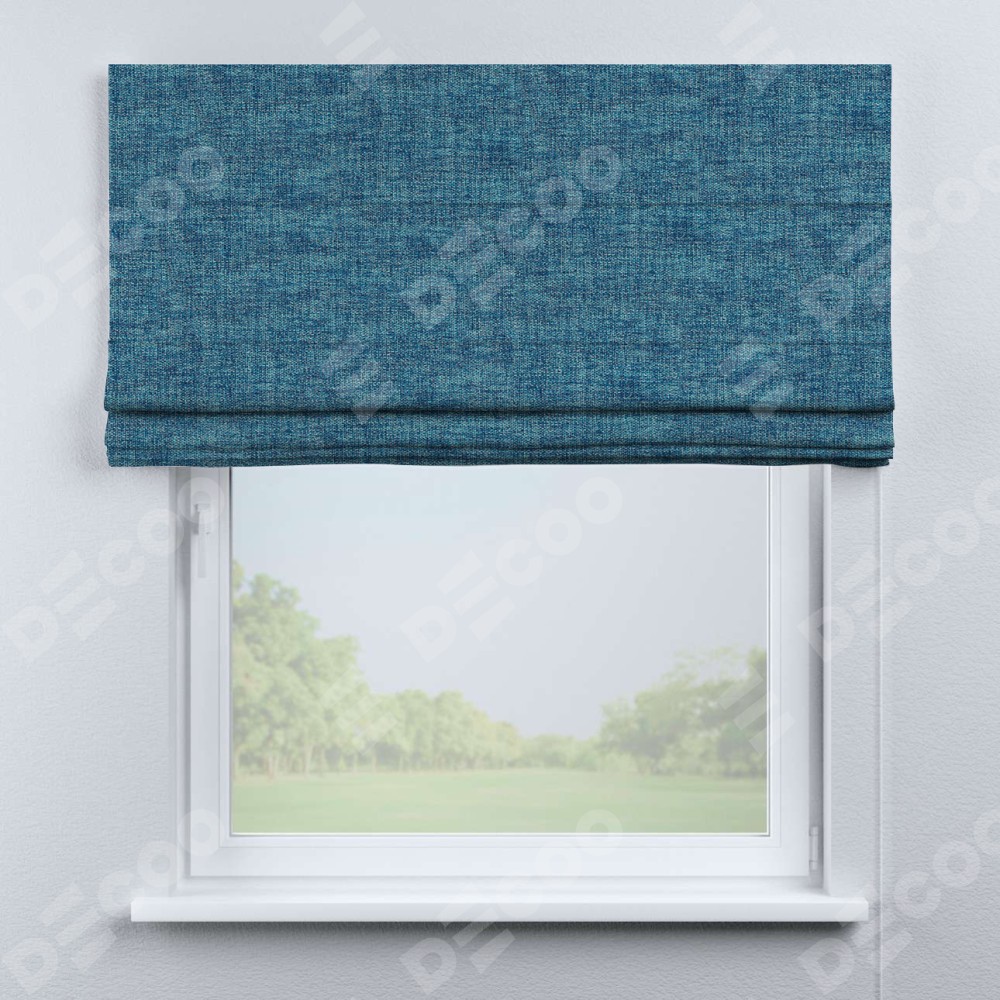 Классическая римская штора производителя «Cortin», пошита из ткани рогожка димаут лазурно-синий, артикул: 91024. Имеет универсальный механизм и подходит для монтажа: на потолок, на стену и в нишу.