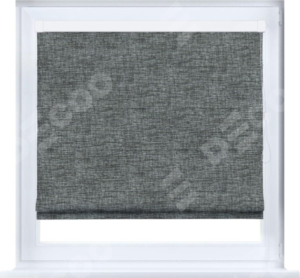 Римская штора производителя «Cortin», устанавливается на створку окна, пошита из ткани рогожка димаут тёмно-серый, артикул 91029. Штора шьётся по индивидуальным размерам, для данного типа римской шторы возможная ширина от 35 до 150 см., высота до 250 см.