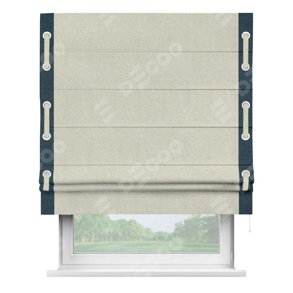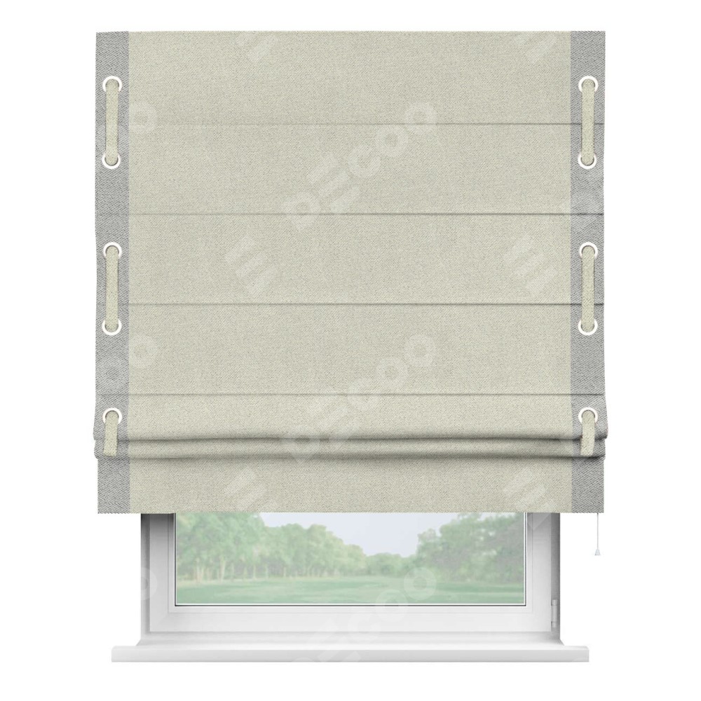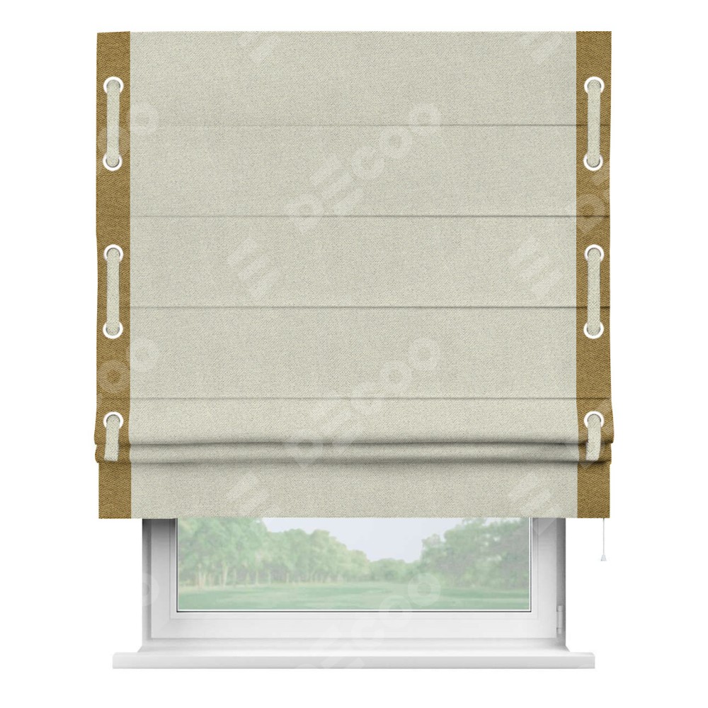 Римская штора «Кортин» с кантом Стрим Дуо (люверсы с пояском), для проема, ткань твид блэкаут, шампань