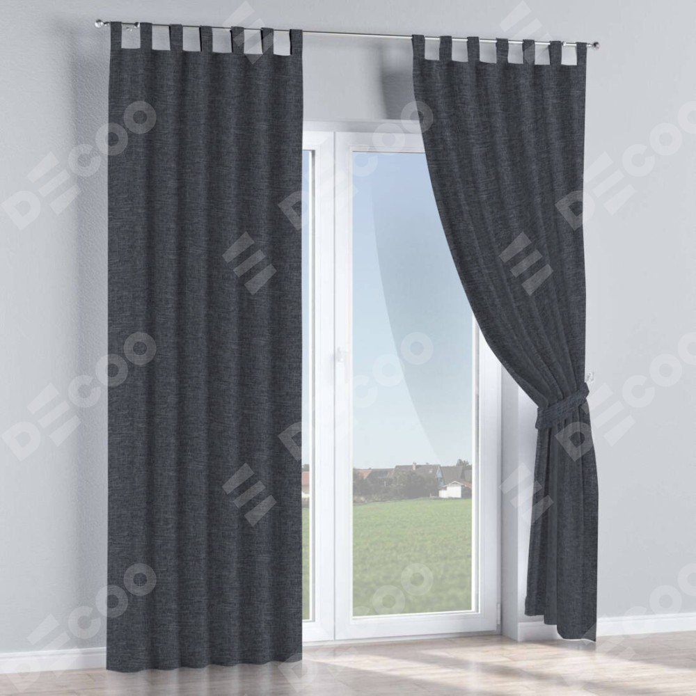Комплект прямых штор, от производителя «Cortin», пошиты из ткани рогожка димаут графит, артикул ткани 90950. Данная модель пошита на петлях, комплектуется на выбор круглым карнизом и подходит для монтажа на стену или потолок. Прямые шторы на петлях шьются по стандарту с коэффициентом 1/2 (на 100 см. ширины проёма 200 см. ширины ткани), отличительным преимуществом данной модели является простой способ монтажа. Достаточно повесить ее на трубу и штора готова!