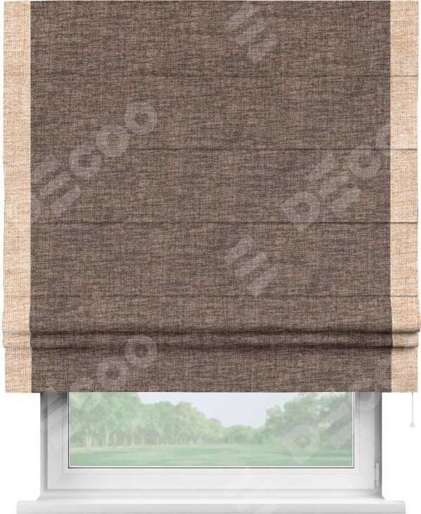 Римская штора «Кортин» для проёма, рогожка димаут коричневый, с кантом Стрим Дуо