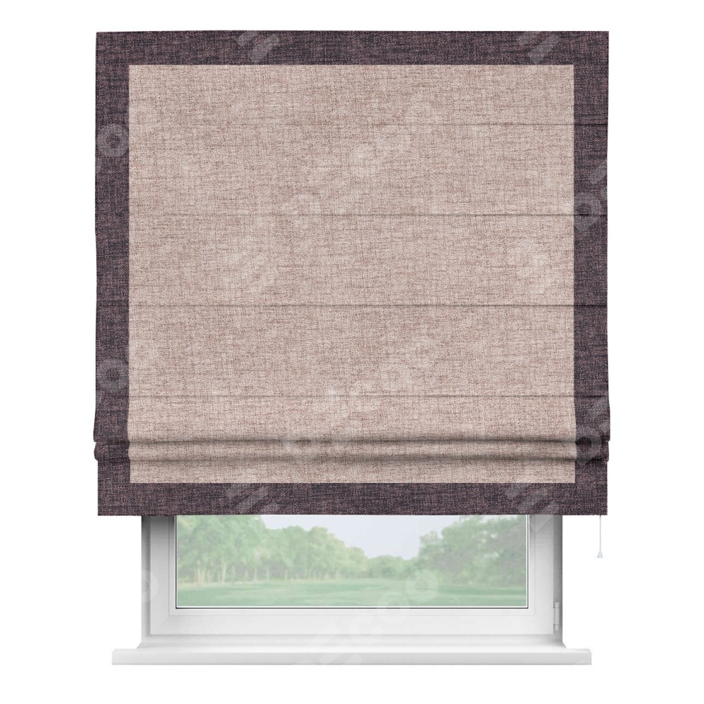 Римская штора «Кортин» для проёма, рогожка димаут пыльный розовый, с кантом Чесс