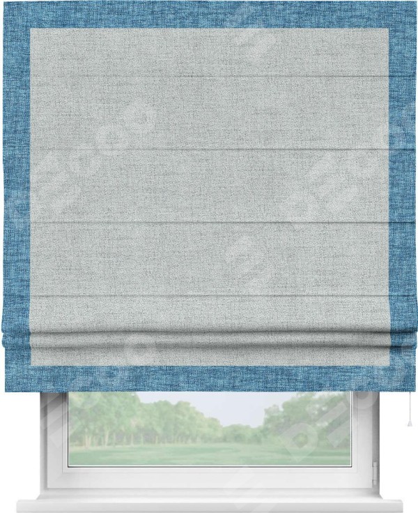 Римская штора пошита из ткани рогожка димаут серый, артикул: 91027, с отделкой кантом «Чесс» отличается своей уникальной деталью — наличием канта не только по бокам и снизу, но и сверху по всем краям шторы. Это придает шторе особенно аккуратный и завершенный вид, делая акцент на границах и форме шторы. Отделка кантом по всему периметру шторы усиливает её декоративные качества и подчеркивает строгую геометрию, что может быть особенно актуально для современных и минималистичных интерьеров.