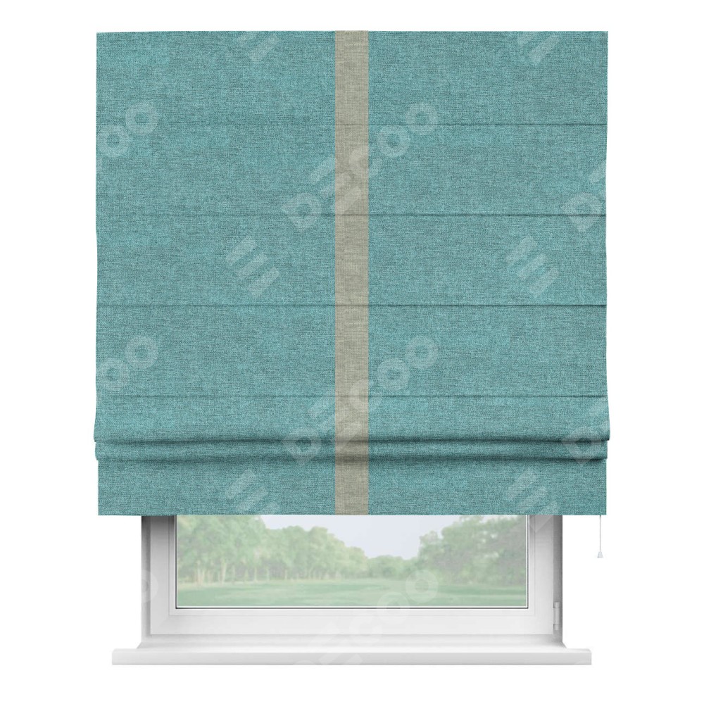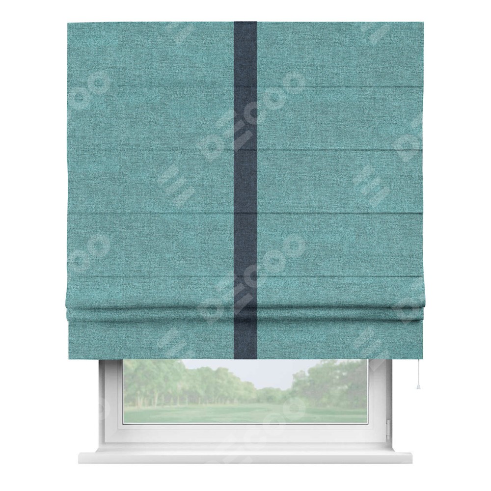 Римская штора «Кортин» с кантом Хайвэй, для проема, ткань лён кашемир бирюзовый