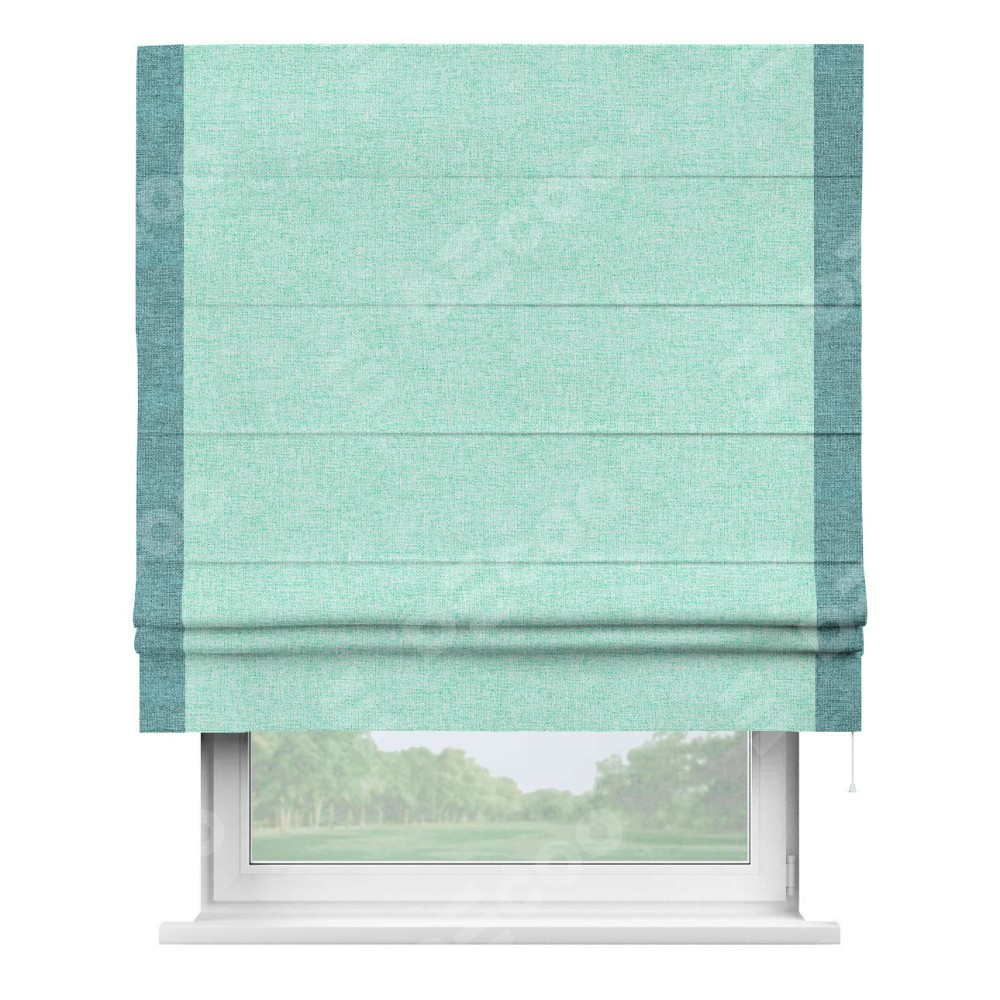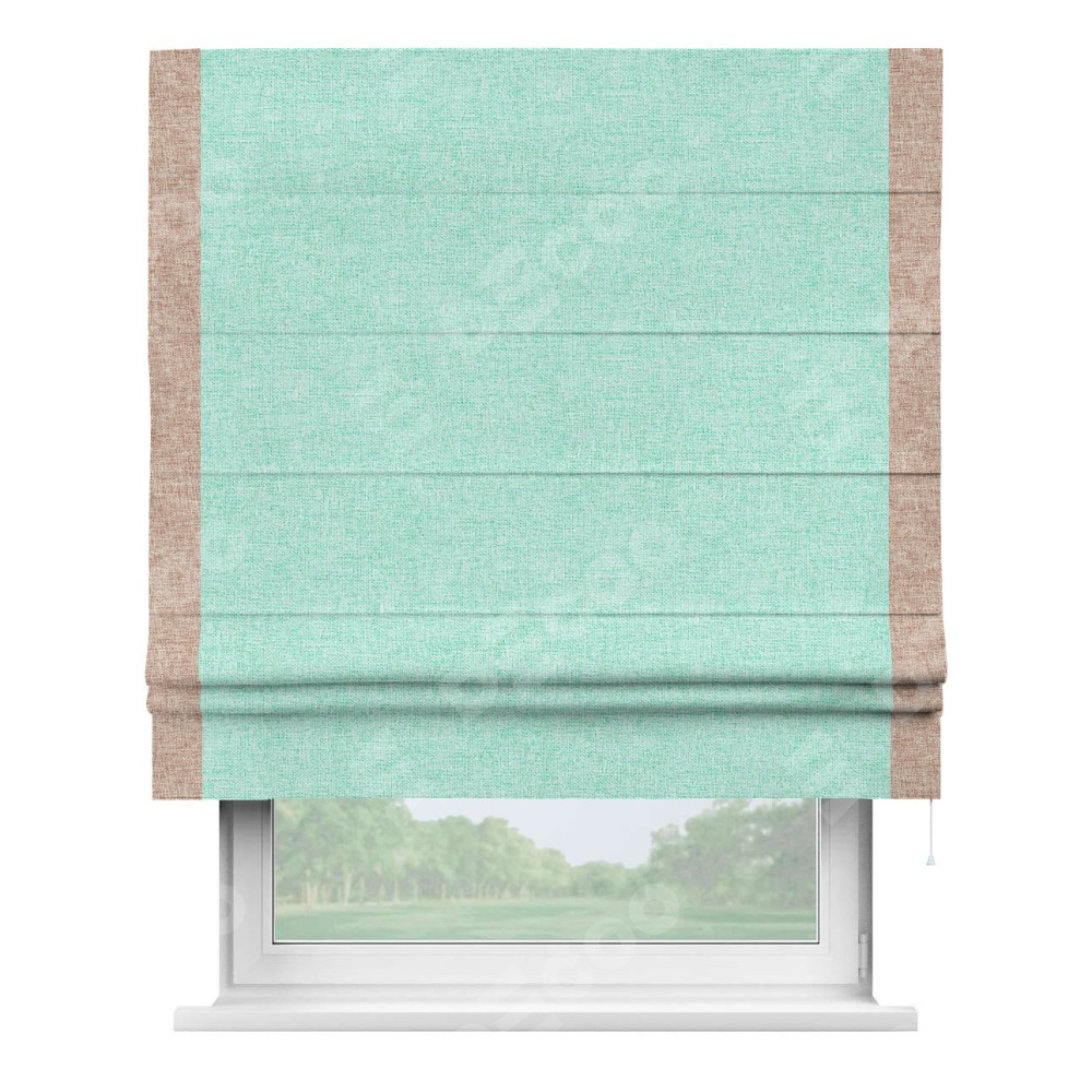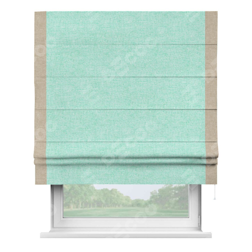 Римская штора «Кортин» для проёма, лён кашемир мятный, с кантом Стрим Дуо