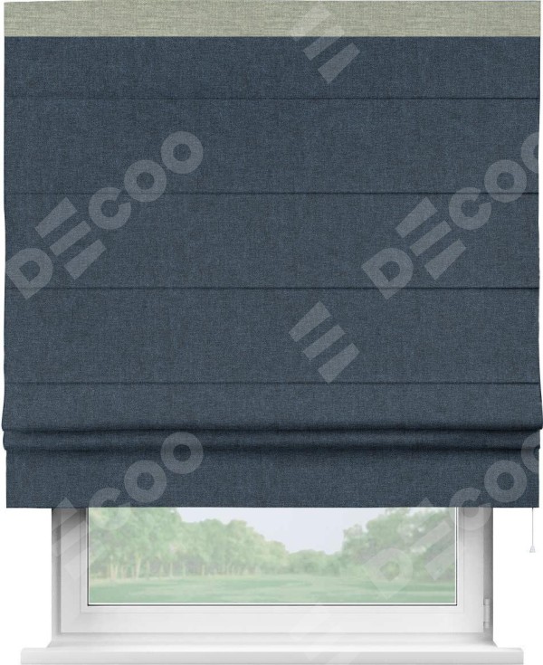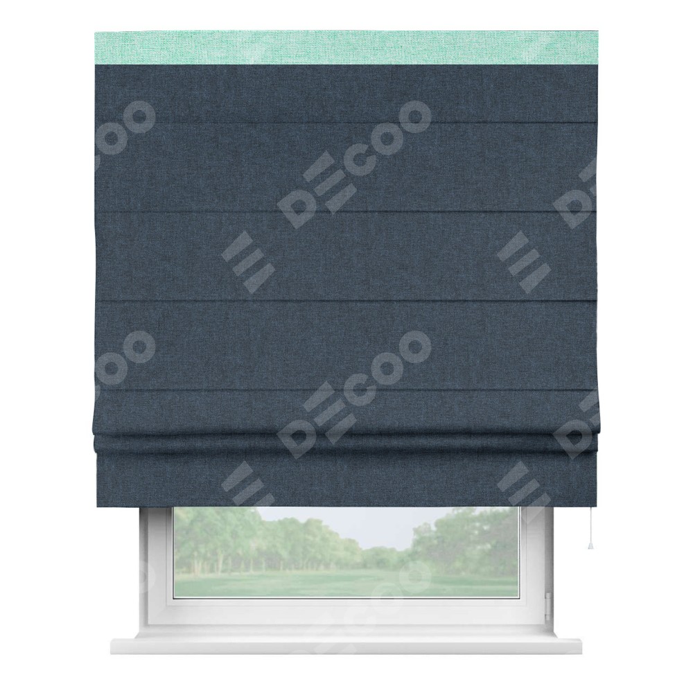 Римская штора «Кортин» для проёма, лён кашемир синий, с кантом Кинг