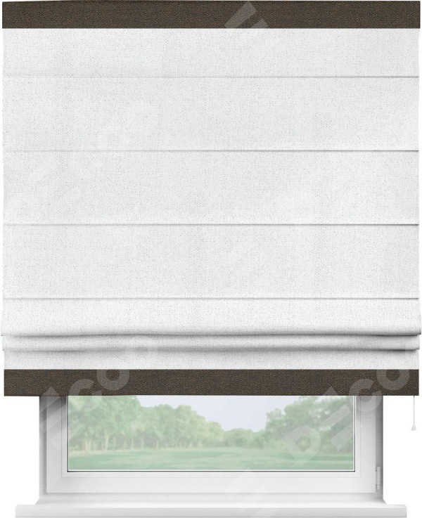 Римская штора «Кортин» для проема, лён белоснежный, с кантом Горизонт