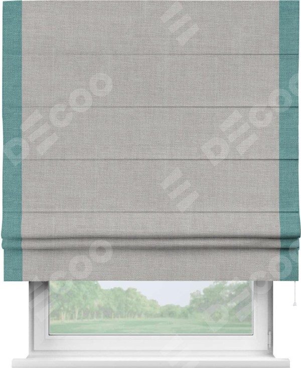 Римская штора «Кортин» для проёма, лён серый, с кантом Стрим Дуо
