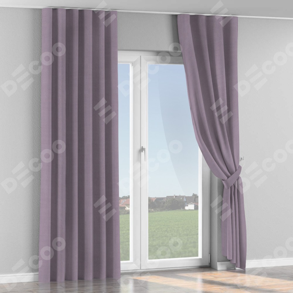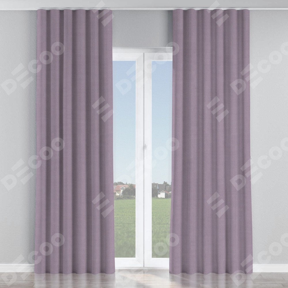 Комплект прямых штор, от производителя «Cortin», пошиты из ткани однотонный блэкаут лиловый, артикул ткани 91577. С изнаночной стороны в верхней части штор пристрачивается шторная лента с декоративными складками «Волна». Для создания элегантных складок рекомендуемый коэффициент 1:2 (на 100 см. ширины проёма 200 см. ширины ткани). Важно! Ширина штор указана без учёта коэффициента сборки!