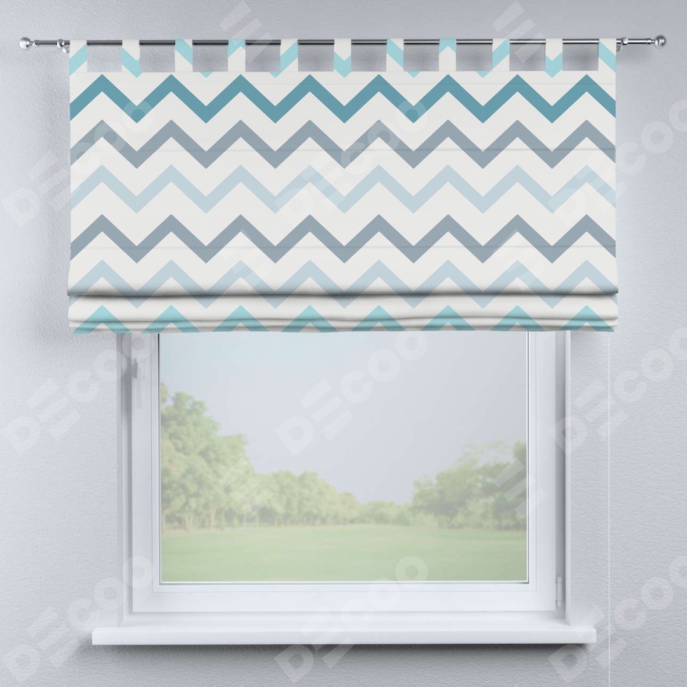 Римская штора производителя «Cortin», используется для проёма, пошита из ткани блэкаут с нанесением сублимационной печати «Небесный шеврон». Данная модель пошита на петлях, комплектуется на выбор круглым карнизом и подходит для монтажа на стену. Римская штора на петлях имеет простую систему регулировки высоты, отличительным преимуществом данной модели является простой способ монтажа. Достаточно повесить ее на трубу и штора готова!