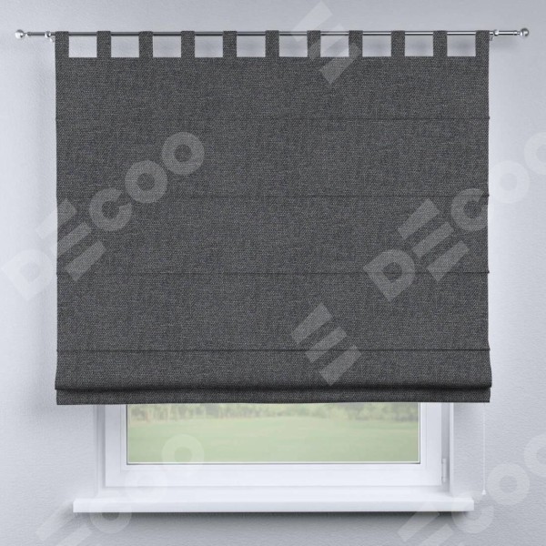 Римская штора производителя «Cortin», используется для проёма, пошита из ткани лён димаут графит, артикул ткани 140644. Данная модель пошита на петлях, комплектуется на выбор круглым карнизом и подходит для монтажа на стену. Римская штора на петлях имеет простую систему регулировки высоты, отличительным преимуществом данной модели является простой способ монтажа. Достаточно повесить ее на трубу и штора готова!