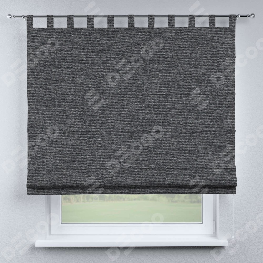 Римская штора производителя «Cortin», используется для проёма, пошита из ткани лён димаут графит, артикул ткани 140644. Данная модель пошита на петлях, комплектуется на выбор круглым карнизом и подходит для монтажа на стену. Римская штора на петлях имеет простую систему регулировки высоты, отличительным преимуществом данной модели является простой способ монтажа. Достаточно повесить ее на трубу и штора готова!