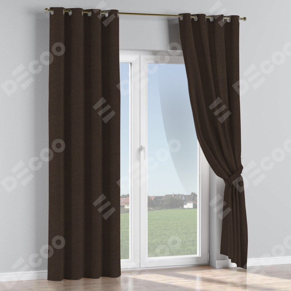 Комплект прямых штор, от производителя «Cortin», пошиты из ткани лён тёмно-коричневый, артикул ткани 104497. Данная модель пошита на люверсах, комплектуется на выбор круглым карнизом и подходит для монтажа на стену или потолок. Для создания элегантных складок рекомендуемый коэффициент 1:2 (на 100 см. ширины проёма 200 см. ширины ткани). Важно! Ширина штор указана без учёта коэффициента сборки!
