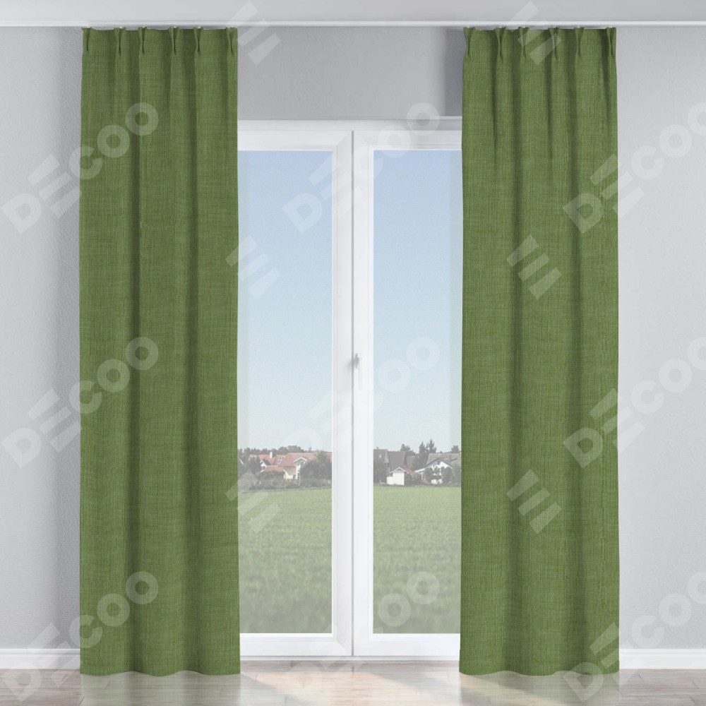 Комплект прямых штор, от производителя «Cortin», пошиты из ткани лён зелёный, артикул ткани 131547. С изнаночной стороны в верхней части штор пристрачивается шторная лента с декоративными складками «Кустик». Для создания элегантных складок рекомендуемый коэффициент 1:2 (на 100 см. ширины проёма 200 см. ширины ткани). Важно! Ширина штор указана без учёта коэффициента сборки!