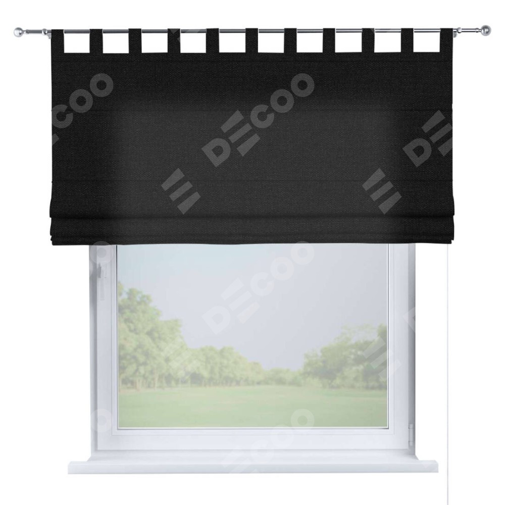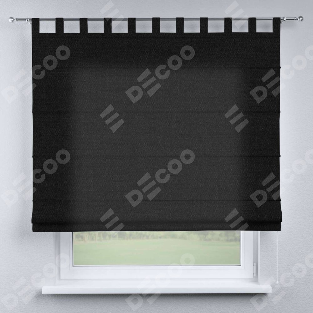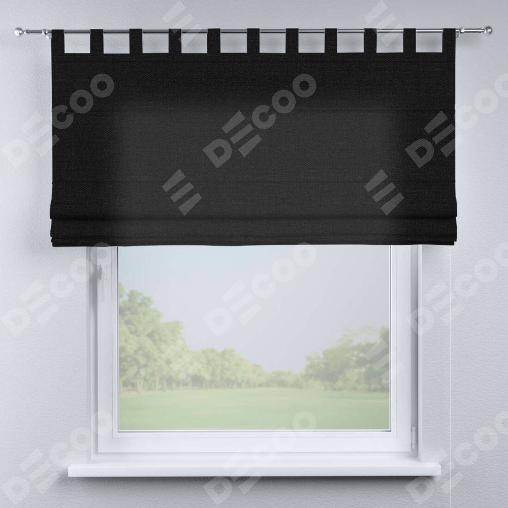 Римская штора производителя «Cortin», используется для проёма, пошита из ткани лён черный, артикул ткани 140815. Данная модель пошита на петлях, комплектуется на выбор круглым карнизом и подходит для монтажа на стену. Римская штора на петлях имеет простую систему регулировки высоты, отличительным преимуществом данной модели является простой способ монтажа. Достаточно повесить ее на трубу и штора готова!