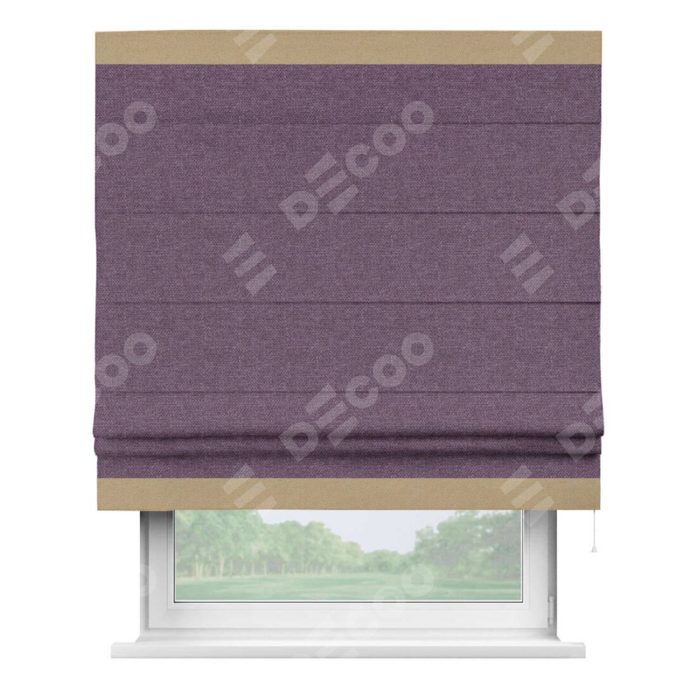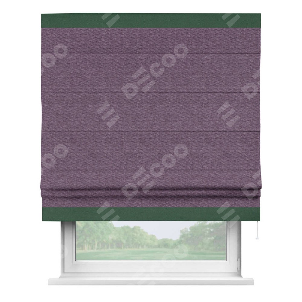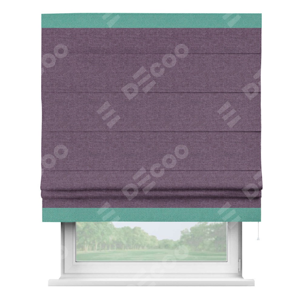 Римская штора производителя «Cortin», используется для проёма, пошита из ткани лён димаут брусника, артикул 16. Отделка шторы кантом «Горизонт», ткань для канта используется из льна димаут разной расцветки на выбор. Имеет универсальный механизм и подходит для монтажа: на потолок, на стену и в нишу.