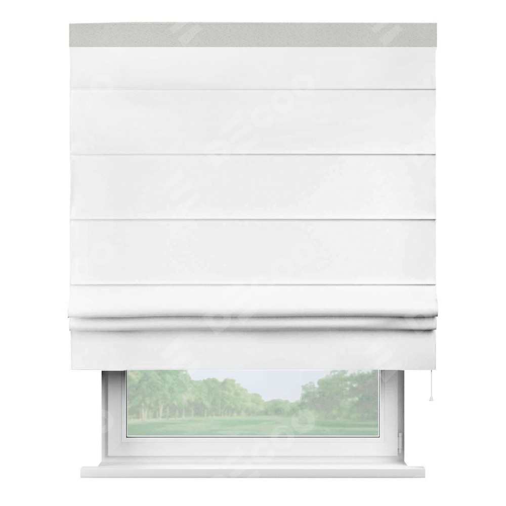 Римская штора «Кортин» для проёма, вайтаут однотонная белая с кантом Кинг