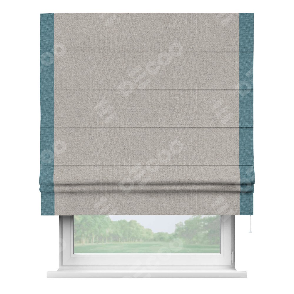 Римская штора «Кортин» для проема, лён димаут серо-бежевый с кантом Стрим Дуо
