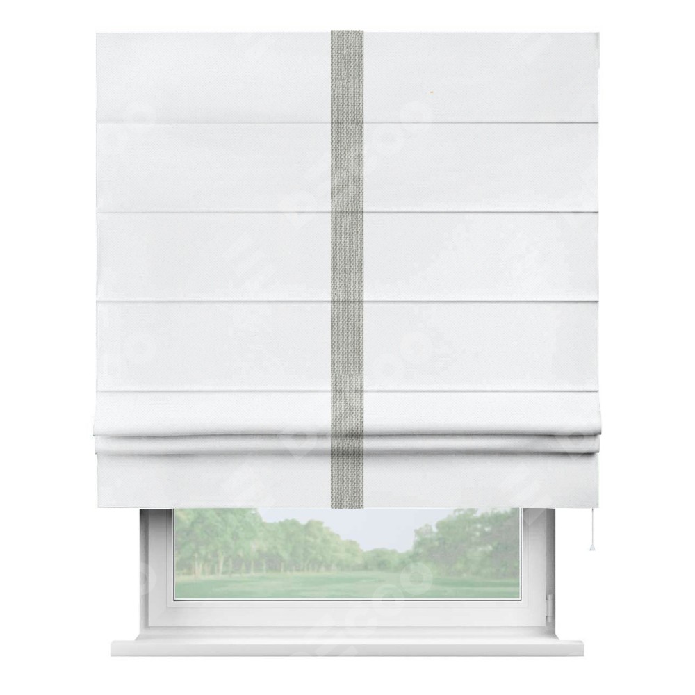 Римская штора «Кортин» для проема, лён димаут белый с кантом Хайвэй