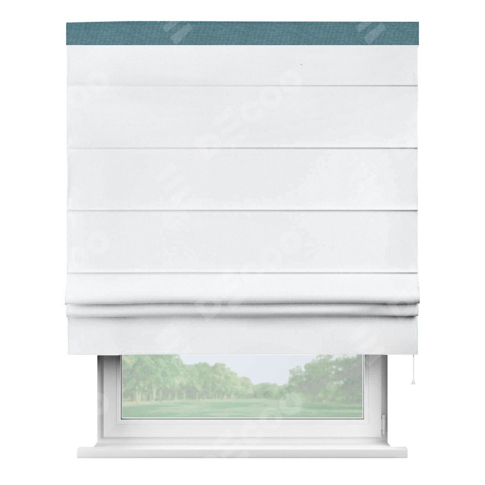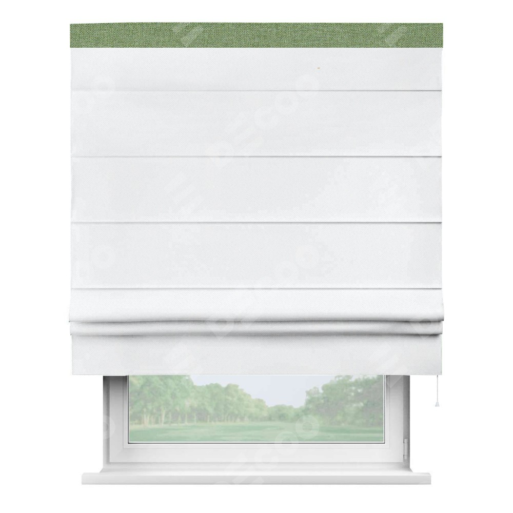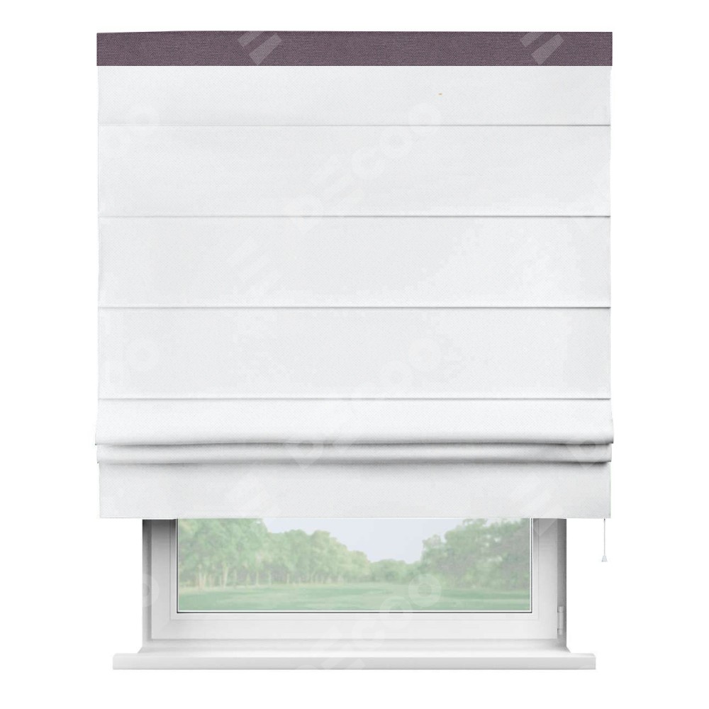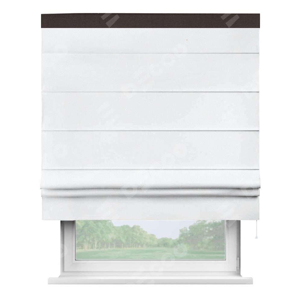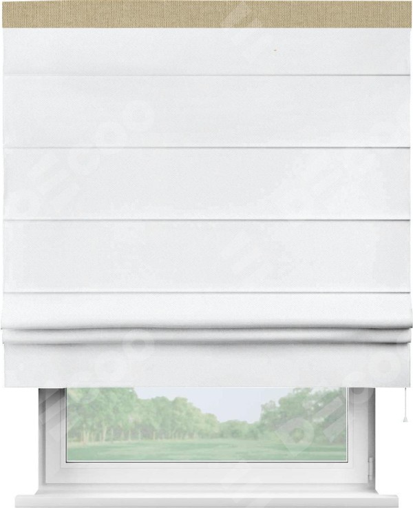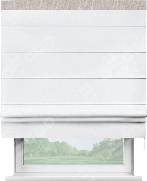 Римская штора «Кортин» для проема, лён димаут белый с кантом Кинг