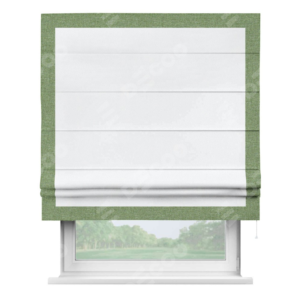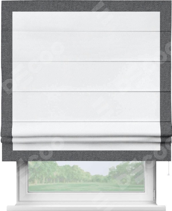 Римская штора «Кортин» для проема, лён димаут белый с кантом Чесс
