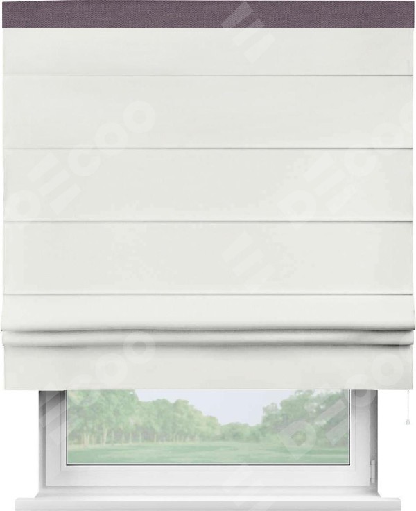 Римская штора «Кортин» для проема, лён димаут молочный с кантом Кинг