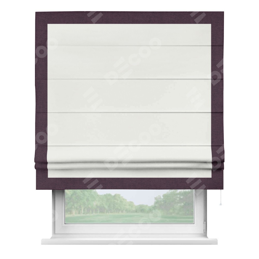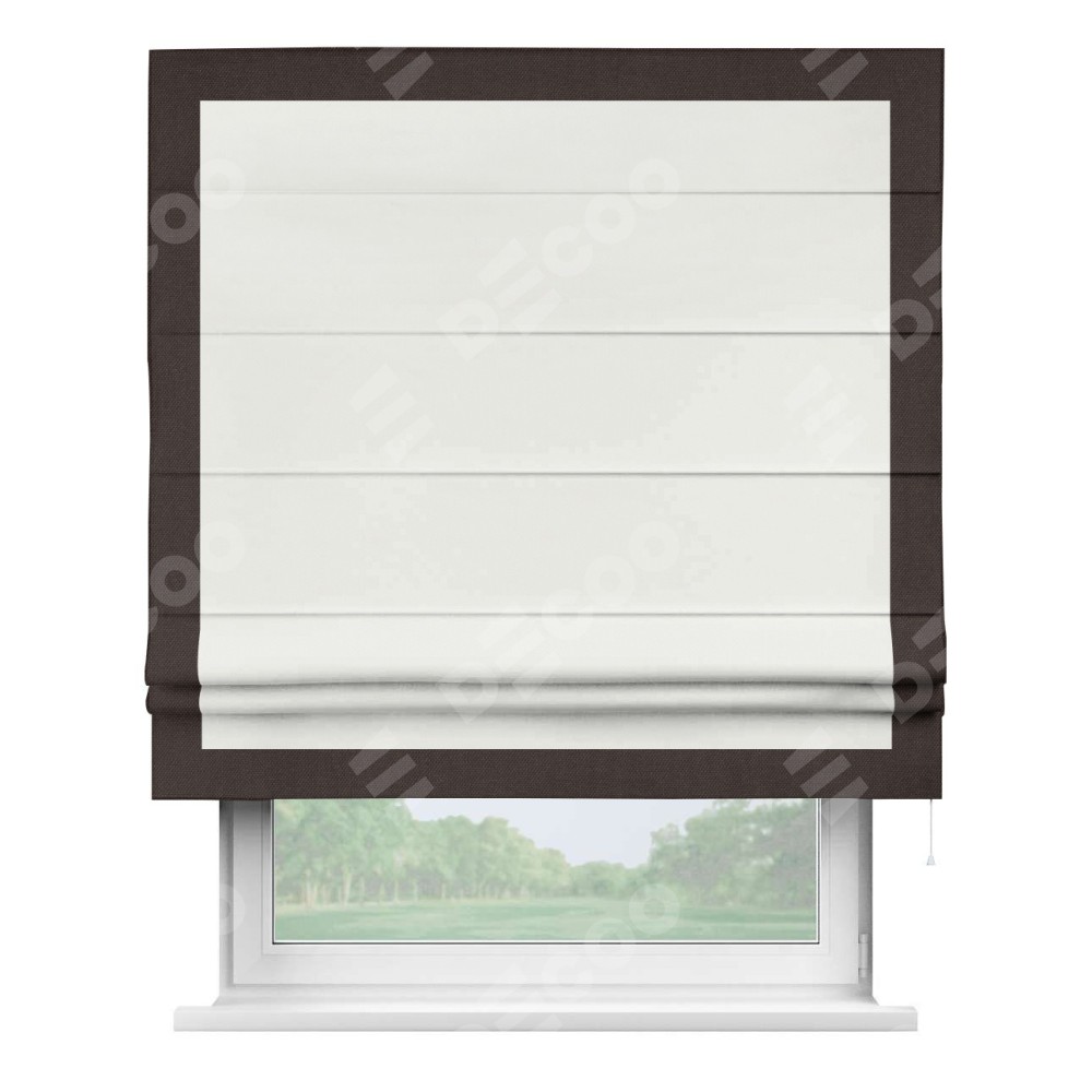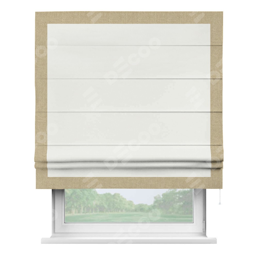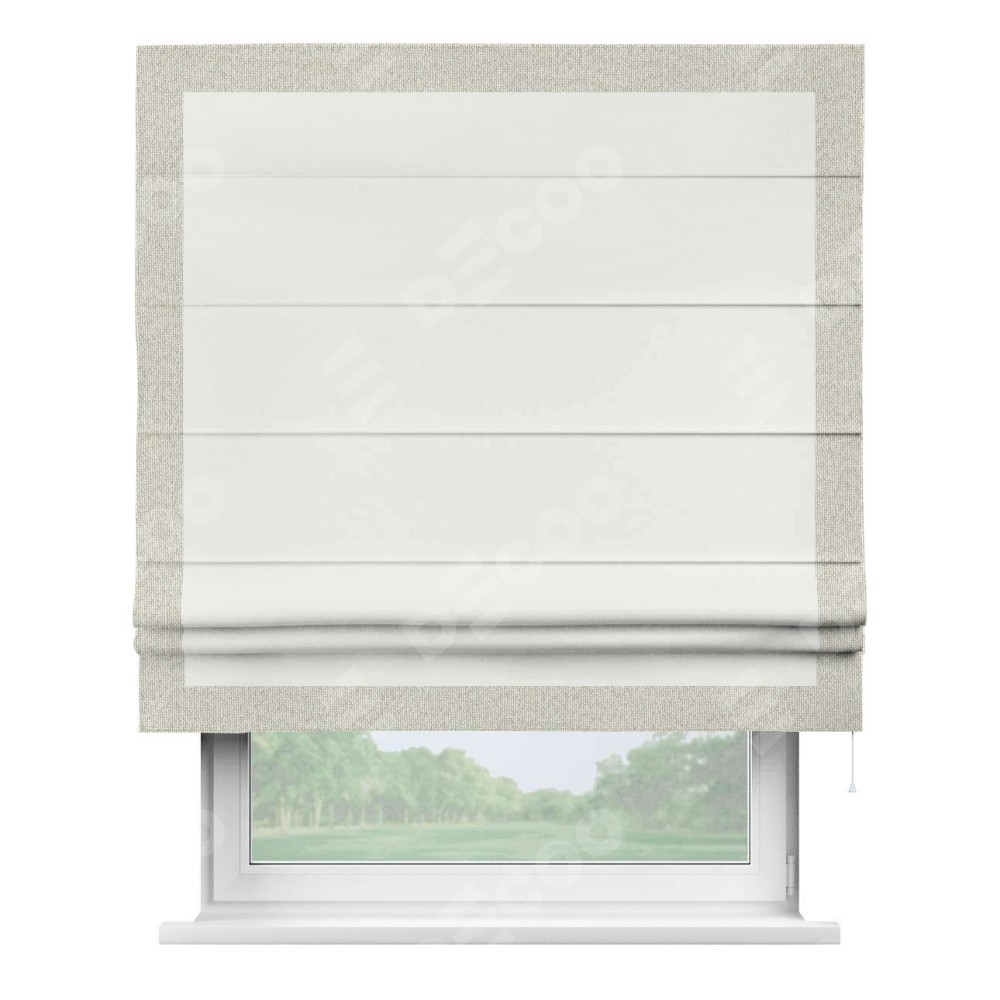 Римская штора «Кортин» для проема, лён димаут молочный с кантом Чесс