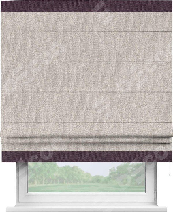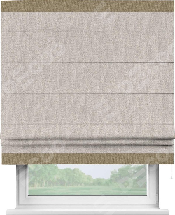 Римская штора «Кортин» для проема, лён димаут бежевый с кантом Горизонт