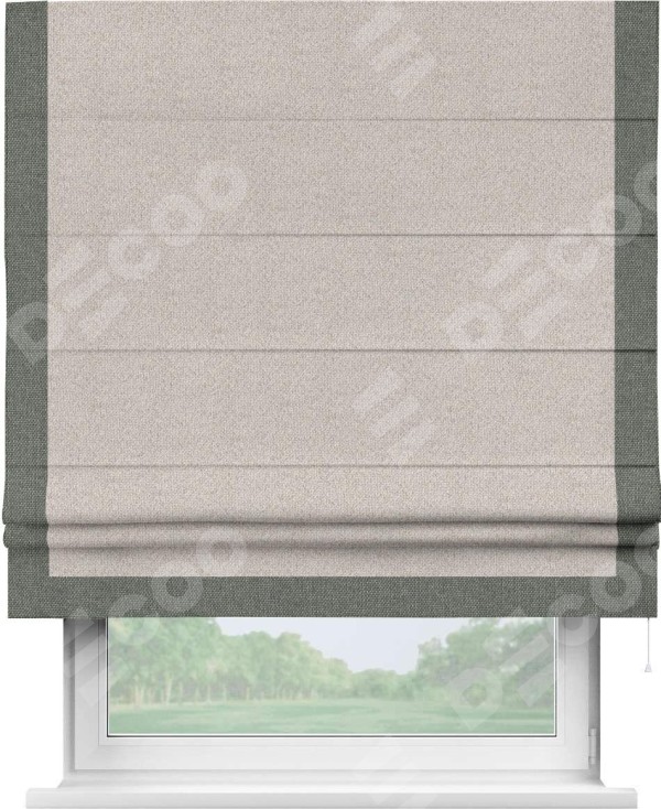 Римская штора «Кортин» для проема, лён димаут бежевый с кантом Виктория