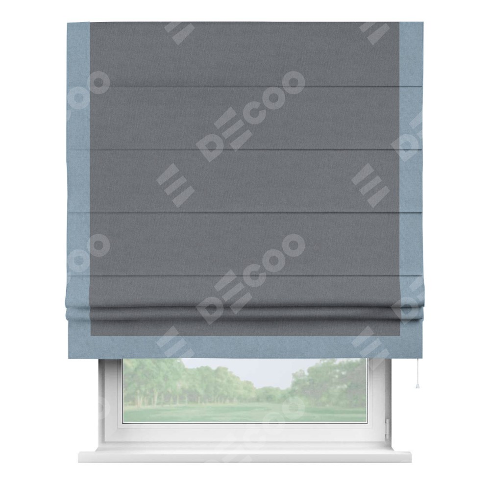 Римская штора «Кортин» с кантом Виктория, для проема, лён блэкаут тёмно-серый