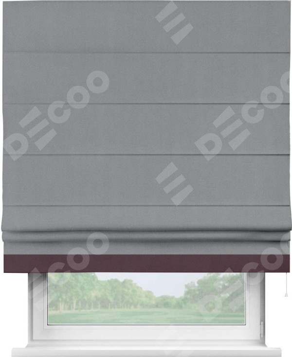 Римская штора «Кортин» для проема, блэкаут однотонный серый с кантом Джестер