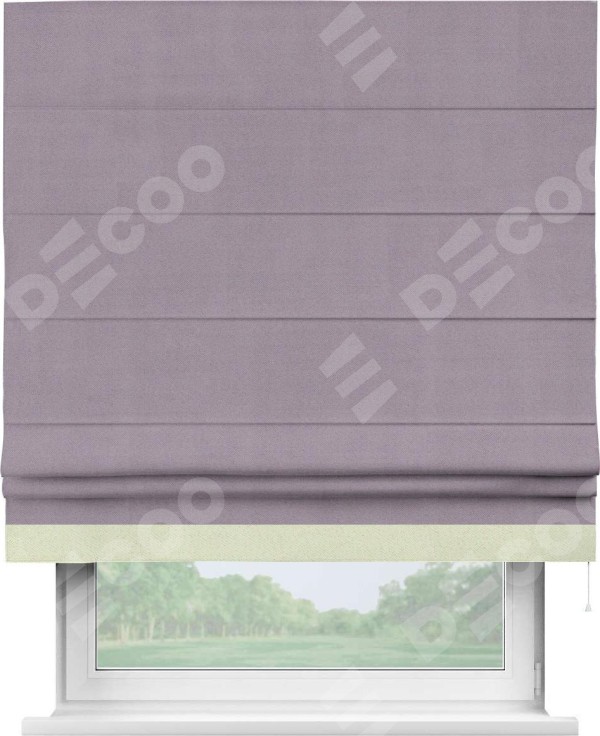 Римская штора «Кортин» для проёма, блэкаут однотонный лиловый с кантом Джестер