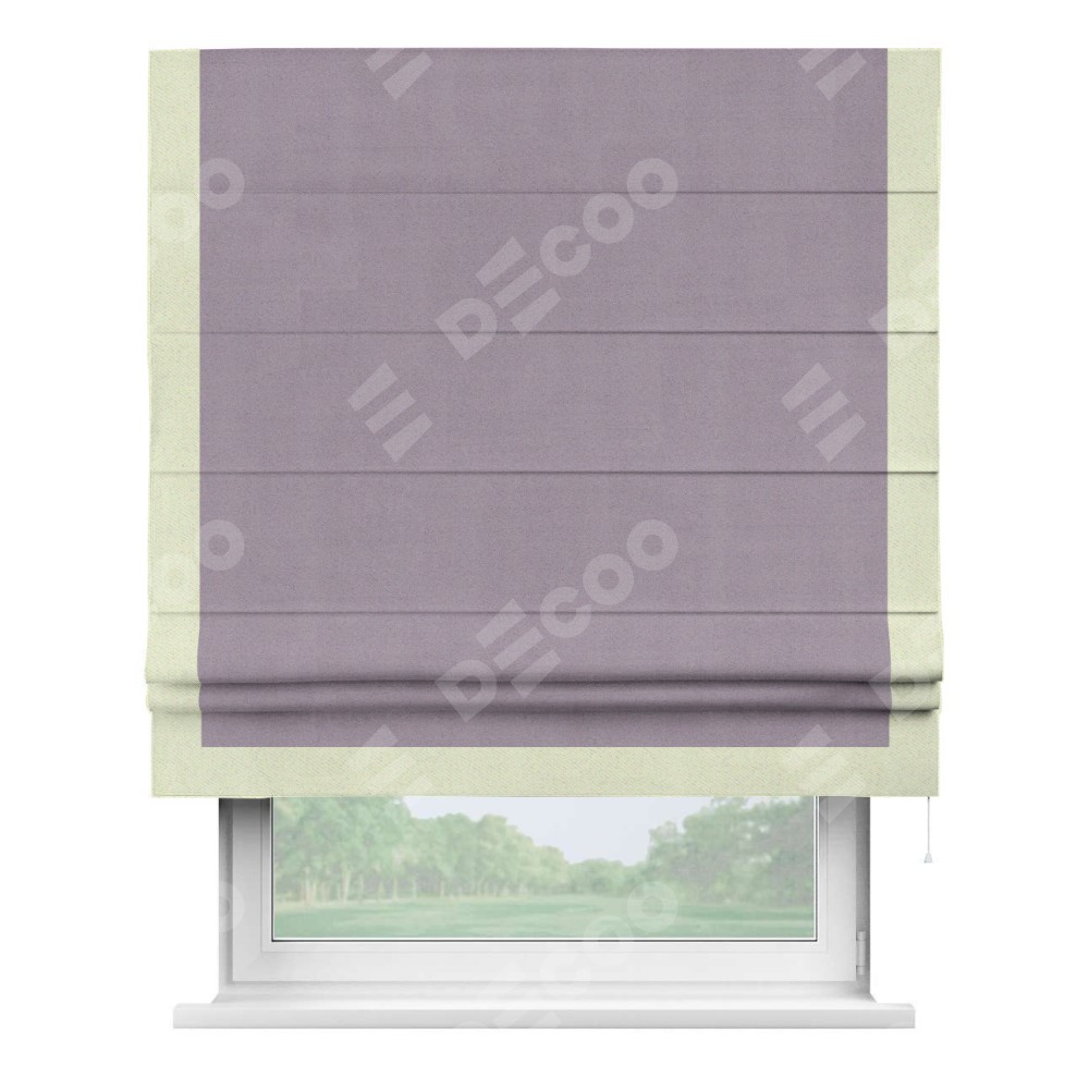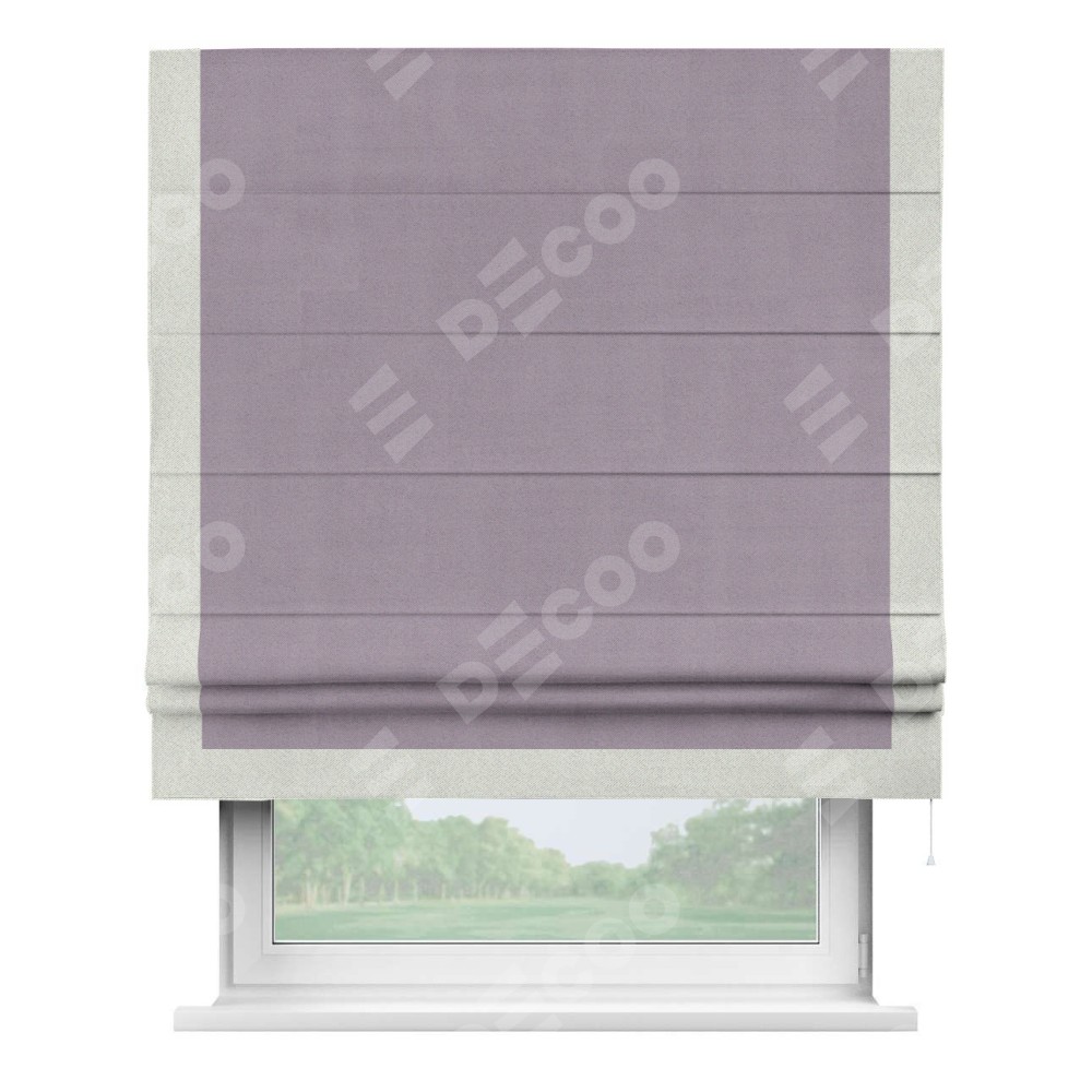 Римская штора «Кортин» для проёма, блэкаут однотонный лиловый с кантом Виктория