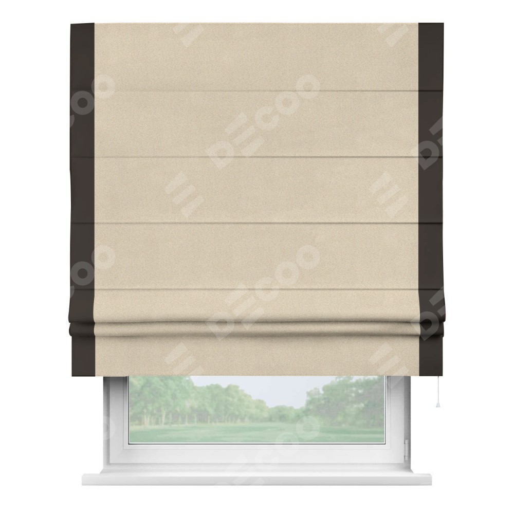 Римская штора «Cortin» для проёма, блэкаут однотонный кофейно-бежевый с кантом Стрим Дуо