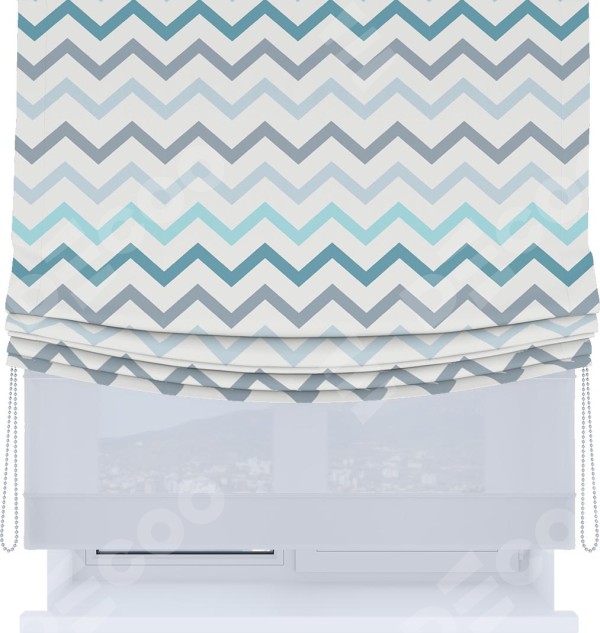 Римская штора «Кортин», день-ночь с мягкими складками, «Небесный шеврон»