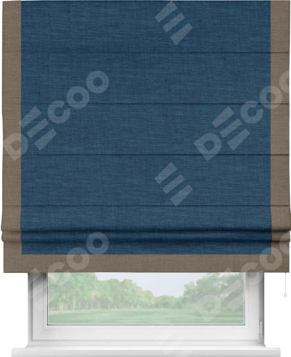 Римская штора «Кортин» для проёма, лён синий, с кантом Виктория