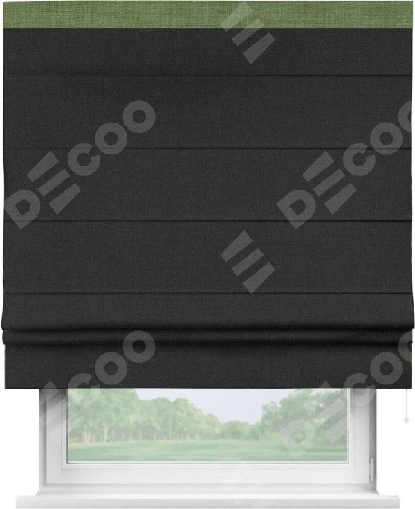 Римская штора «Кортин» для проёма, лён чёрный, с кантом Кинг