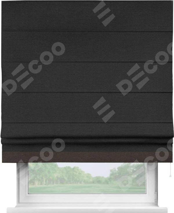 Римская штора «Кортин» для проёма, лён чёрный, с кантом Джестер