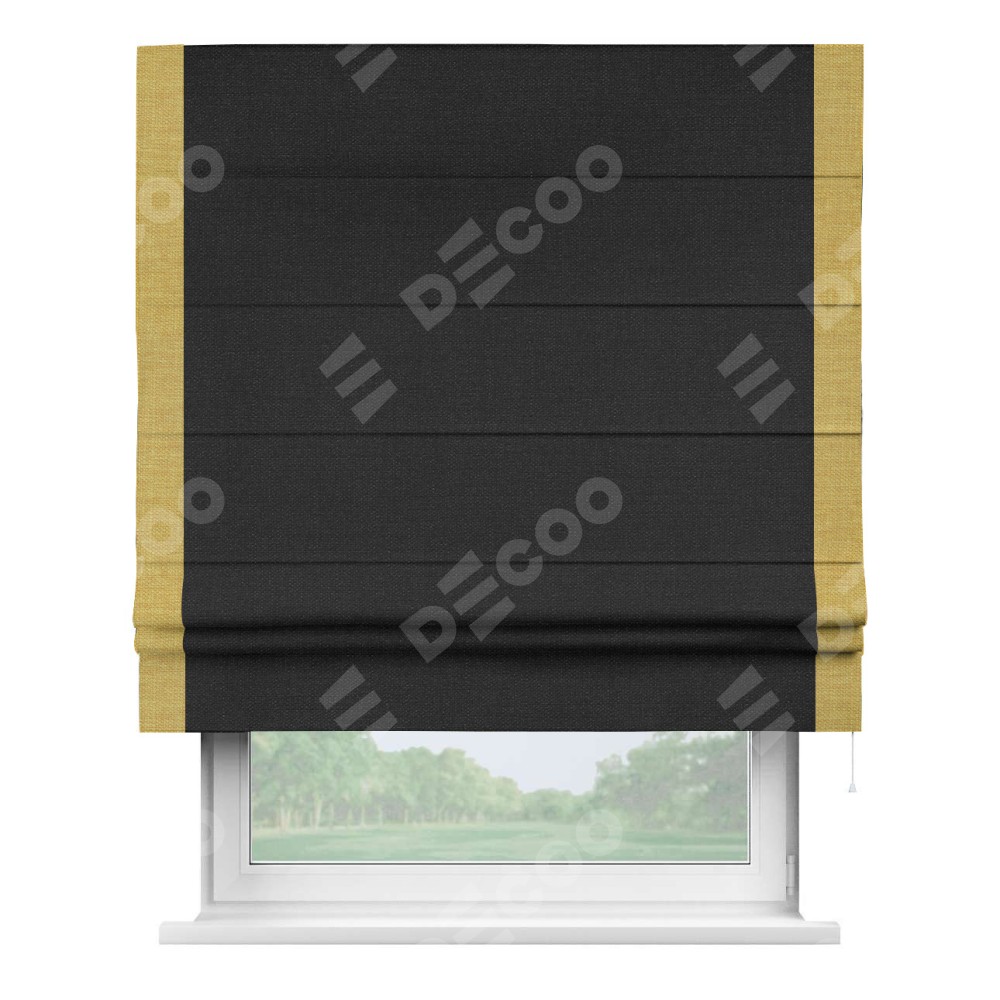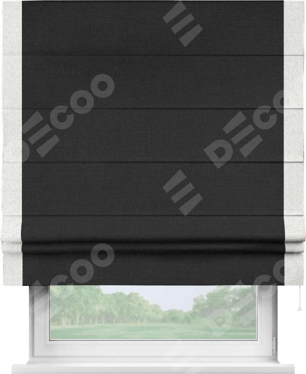 Римская штора «Кортин» для проёма, лён чёрный, с кантом Стрим Дуо