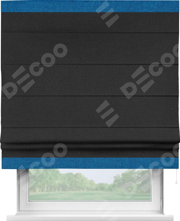 Римская штора «Кортин» для проёма, лён чёрный, с кантом Горизонт