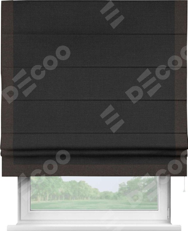 Римская штора «Кортин» для проёма, лён чёрный, с кантом Виктория