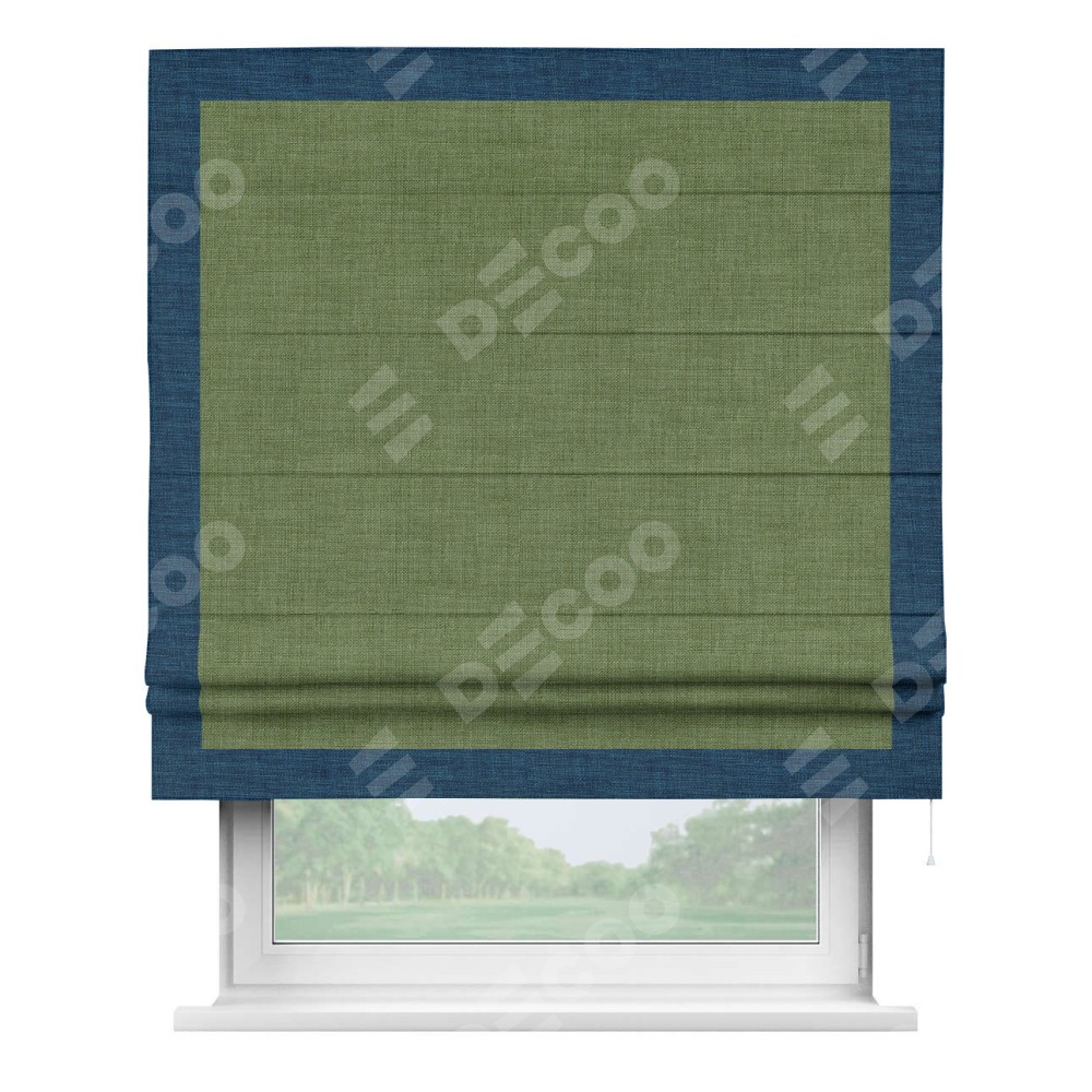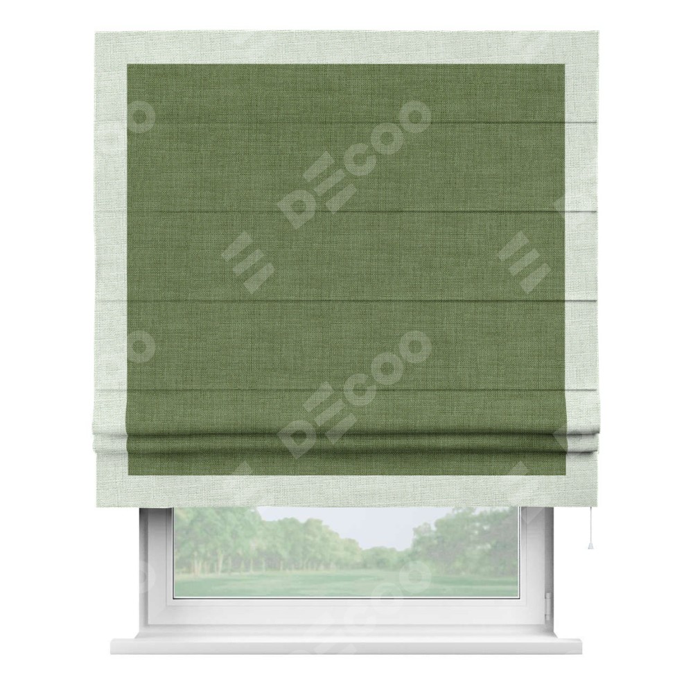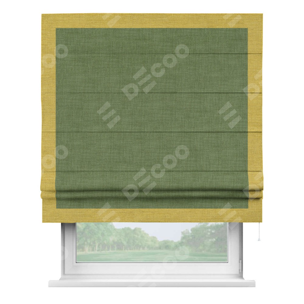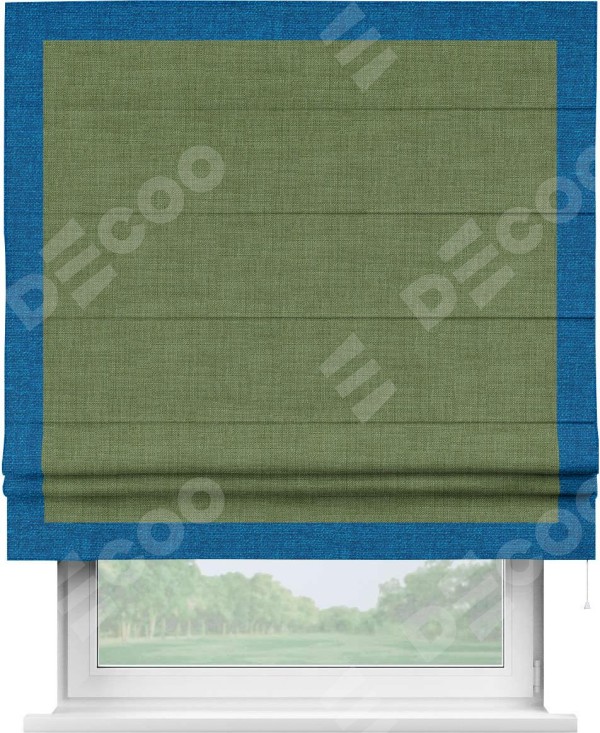 Римская штора «Кортин» для проёма, лён зелёный, с кантом Чесс