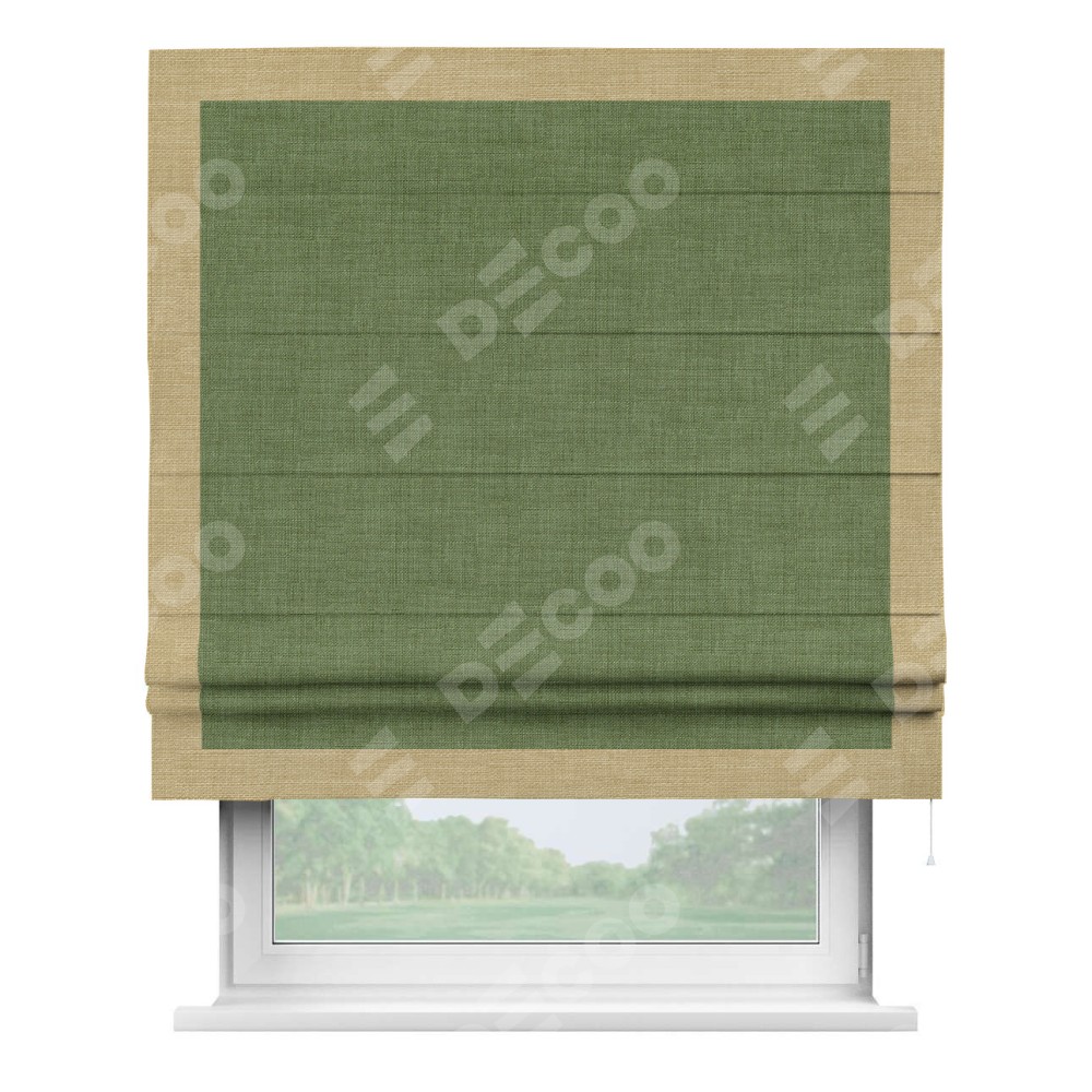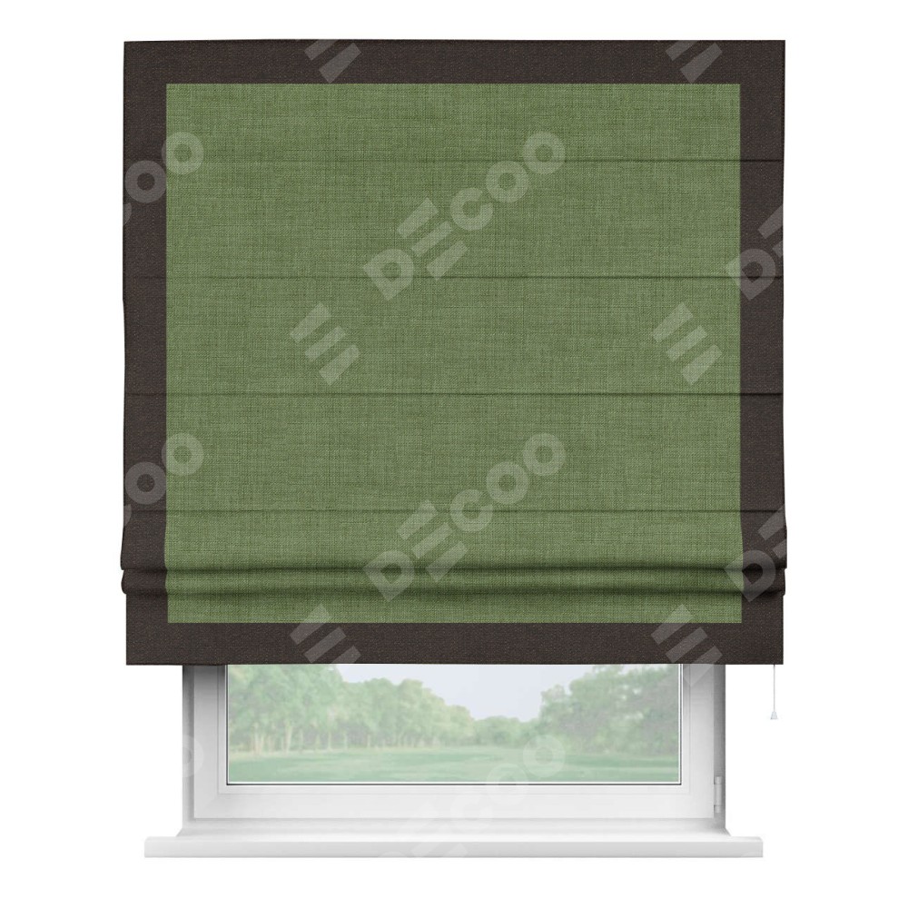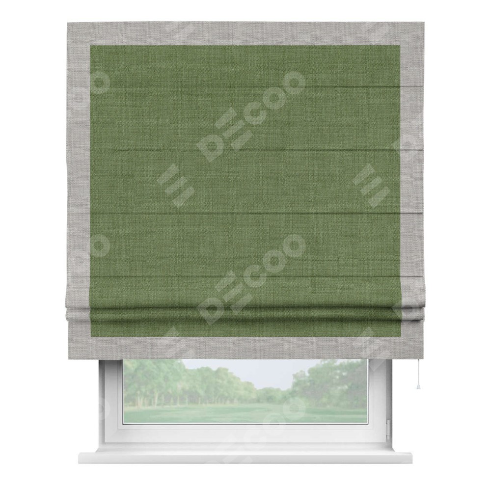 Римская штора «Кортин» для проёма, лён зелёный, с кантом Чесс