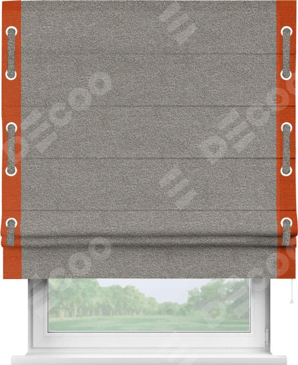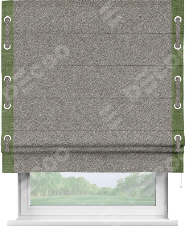 Римская штора «Кортин» для проёма, лён меланж натуральный, с кантом Стрим Дуо (люверсы с пояском)