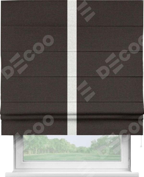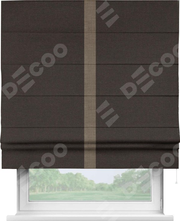Римская штора «Кортин» для проёма, лён тёмно-коричневый, с кантом Хайвэй